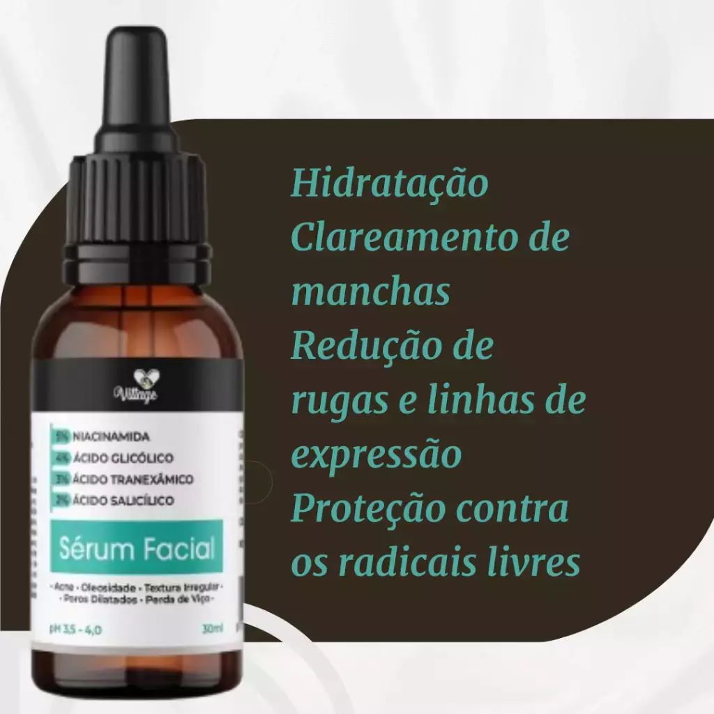 Sérum Clareador de Manchas Facial 30 ml Usar sérum na sua rotina de cuidados com a pele é importante porque eles são formulados com alta concentração de ingredientes ativos, que penetram rapidamente na pele, proporcionando resultados visíveis e específicos para diferentes necessidades, como hidratação, luminosidade, redução de rugas, entre outros. Resumo: - Reduz a tonalidade de regiões hiperpigmentadas. - Pele mais clara, uniforme e luminosa. - Melhora a aparência geral da pele. - Ajuda a prevenir a hiperpigmentação da pele. - Produto hipoalergênico, dermatologicamente testado. Modo de Usar: Utilize diariamente, duas vezes ao dia (manhã e noite). Aplique de 3 a 5 gotas do sérum sobre o rosto limpo e seco.